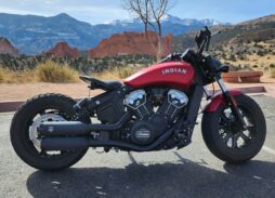Just received and installed a set of the soon to be released @tailgunnerusa “357” slip on mufflers. These have such a strong look with the massive 4.5″ canisters and billet tips. This larger diameter gives a deeper note than any on the market we have heard to date. They use a very well engineered baffel that has no harsh resonance at all and gives a more moderate volume level than most slipons for the Scout. The ceramic black with gloss accents blends perfectly with the Bobber mix of finishes. We LOVE them!